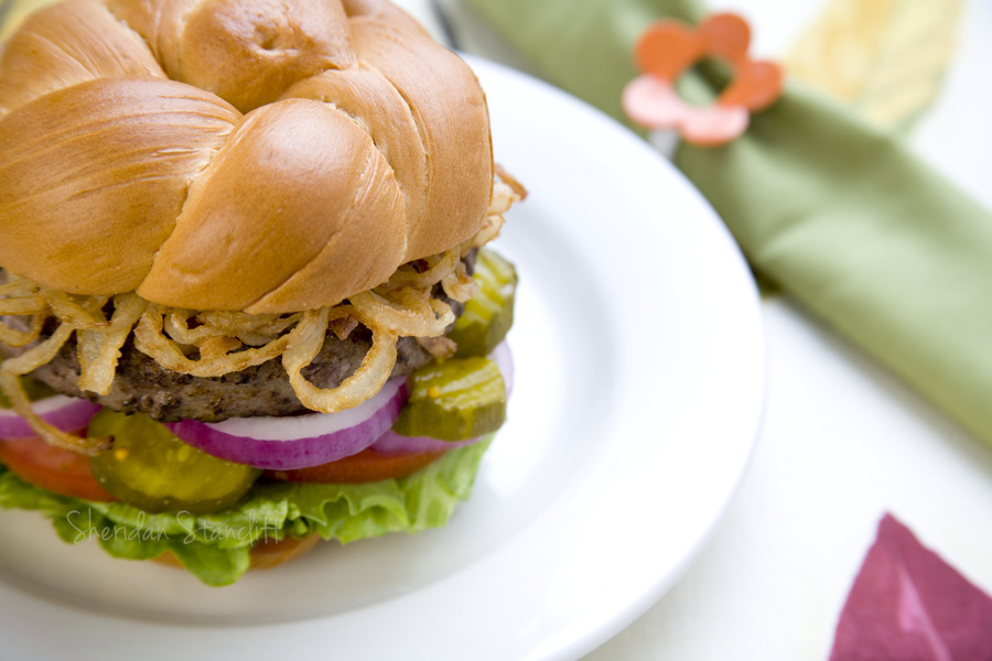 Hamburger with onions and veggies